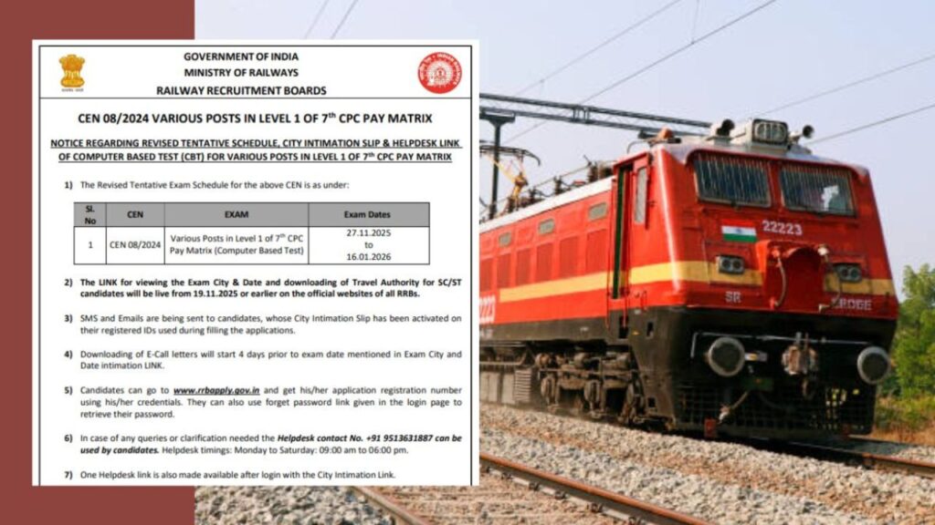 Railway Group D Exam 2025: रेलवे ग्रुप डी परीक्षा 2025 भारत में सबसे बहुप्रतीक्षित सरकारी भर्ती परीक्षाओं में से एक बन गई है। हर साल, लाखों युवा उम्मीदवार इस परीक्षा के माध्यम से भारतीय रेलवे में एक स्थिर और सम्मानित नौकरी पाने के लिए पूरी लगन से तैयारी करते हैं। चाहे आप एक छात्र हों जो अभी अपना करियर शुरू कर रहे हों या अपने किसी प्रियजन के सपनों का समर्थन करने वाले परिवार के सदस्य हों, परीक्षा संरचना, पात्रता, तैयारी की रणनीतियों और परिणाम प्रक्रिया को समझना सभी के लिए महत्वपूर्ण है। यह मार्गदर्शिका आपको रेलवे ग्रुप डी परीक्षा 2025 के हर पहलू को सरल और समझने में आसान भाषा में समझने में मदद करेगी।