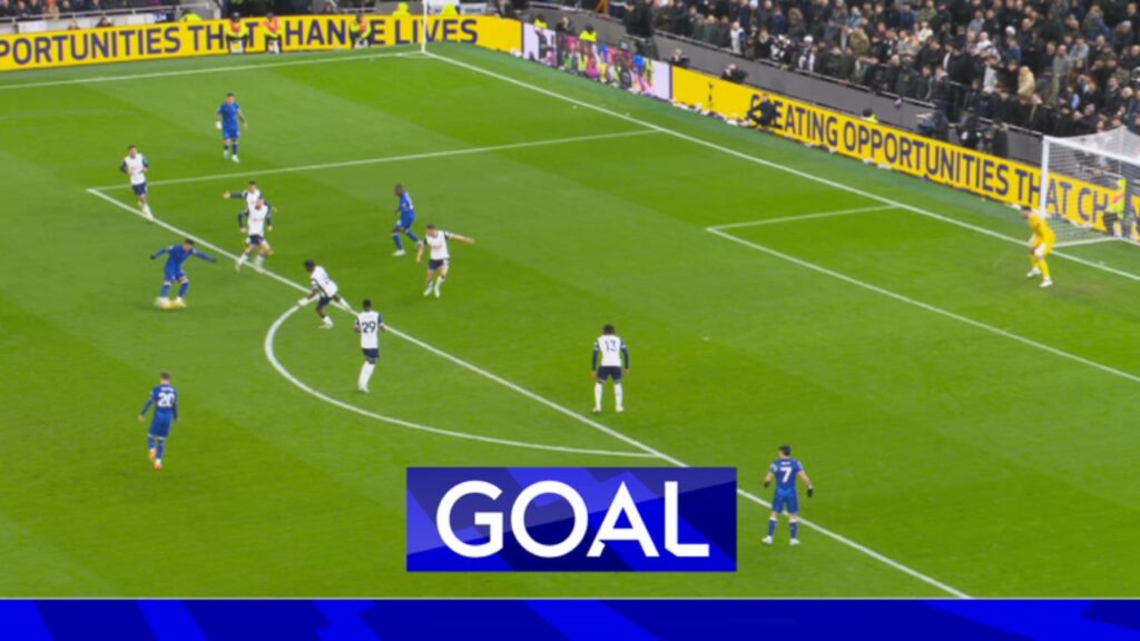 But Chelsea respond quickly — Cole Palmer’s sharp movement and Enzo Fernández’s midfield vision begin to tilt the balance. A quick counterattack leads to a near goal, and suddenly, Tottenham’s composure is tested.